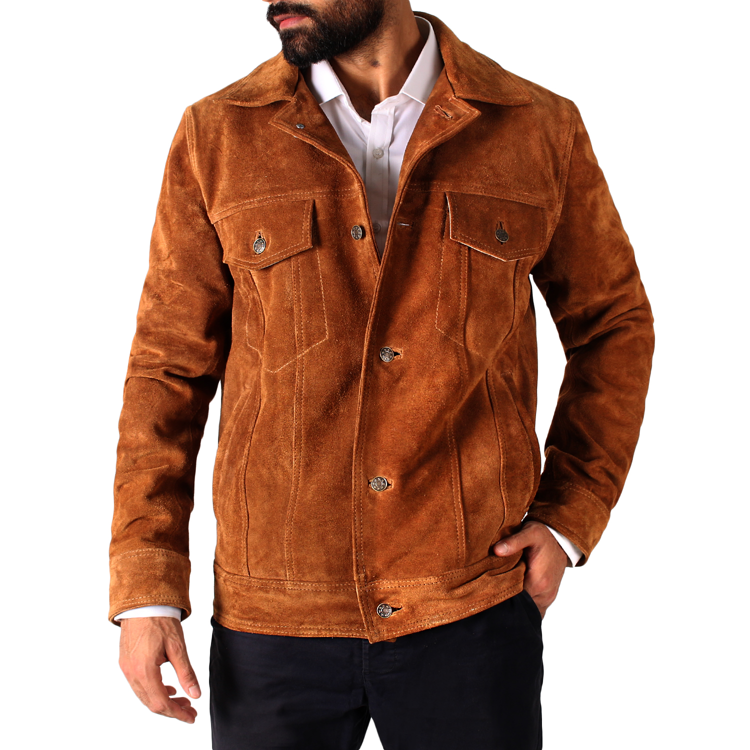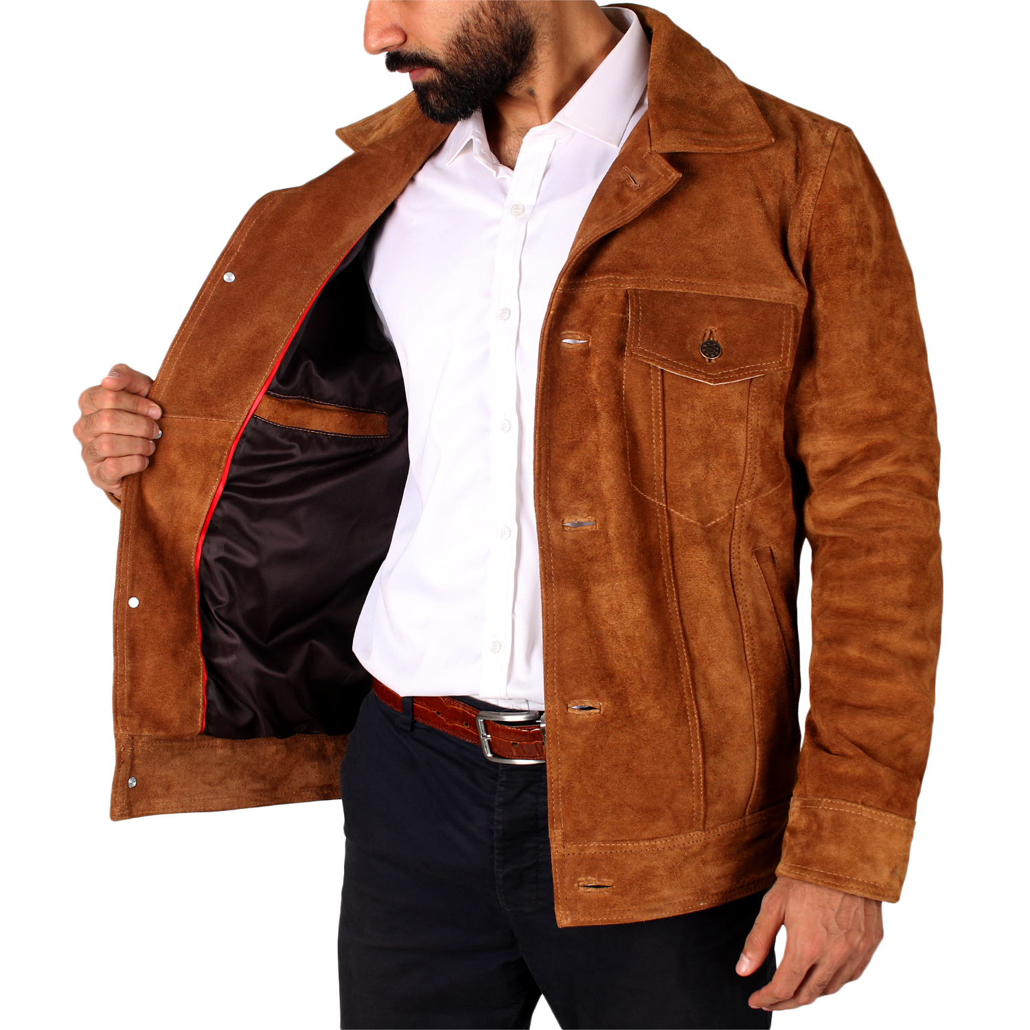 Laverapelle Men’s Trucker Cow Suede Leather Jacket (Black, Blazer Jacket) - 2501003