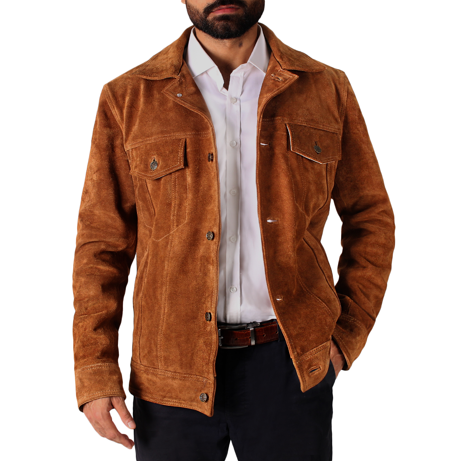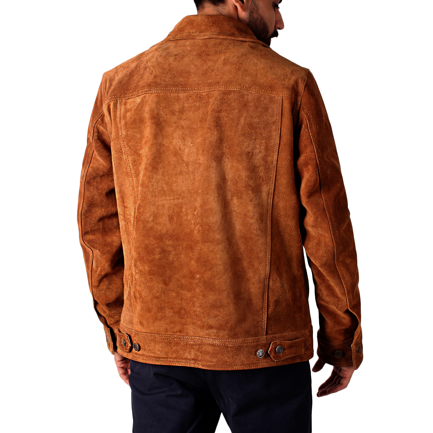 • Design: Crafted from supple cow suede, this trucker jacket pairs a timeless silhouette with classic flap pockets for effortless sophistication.